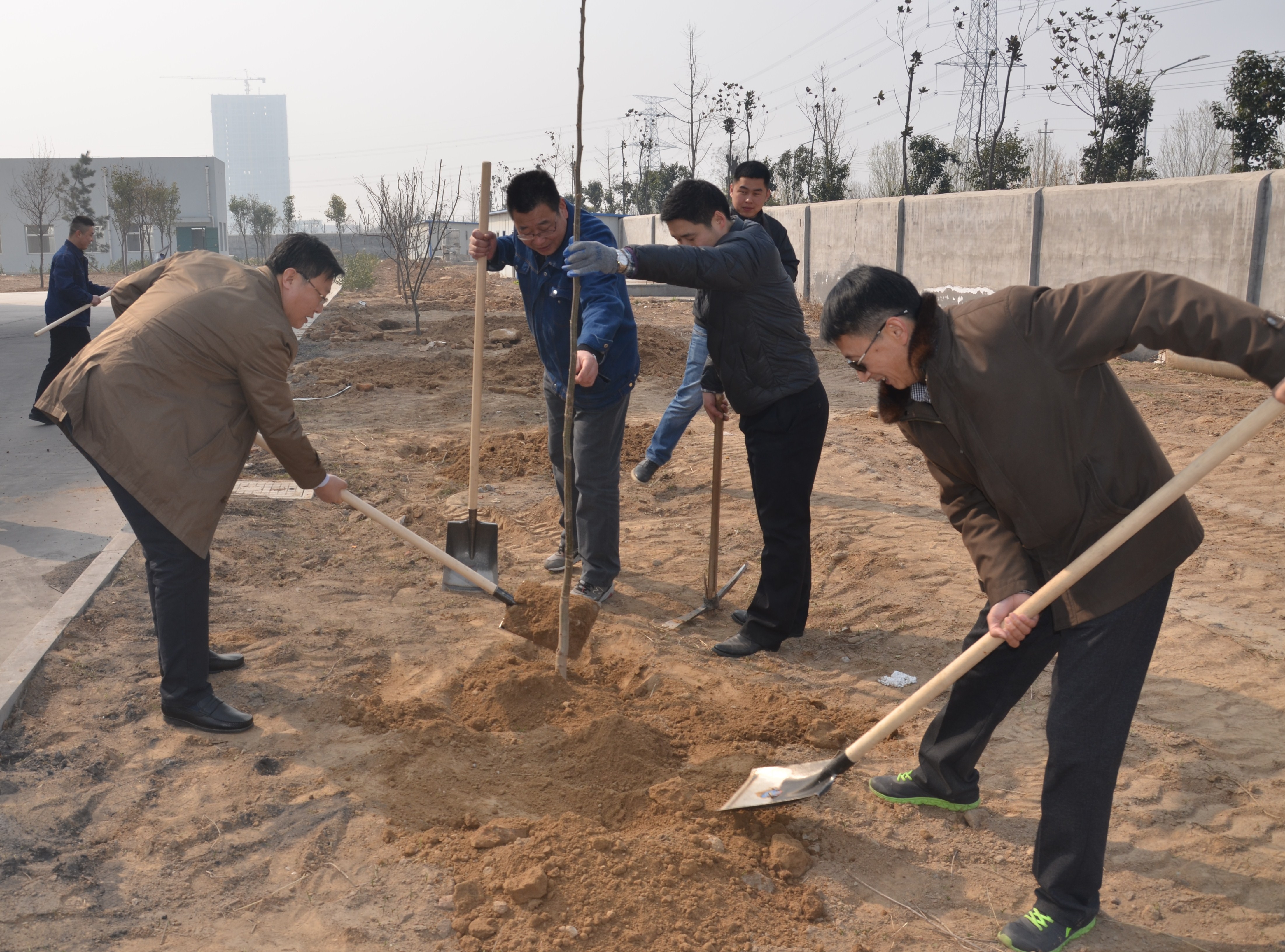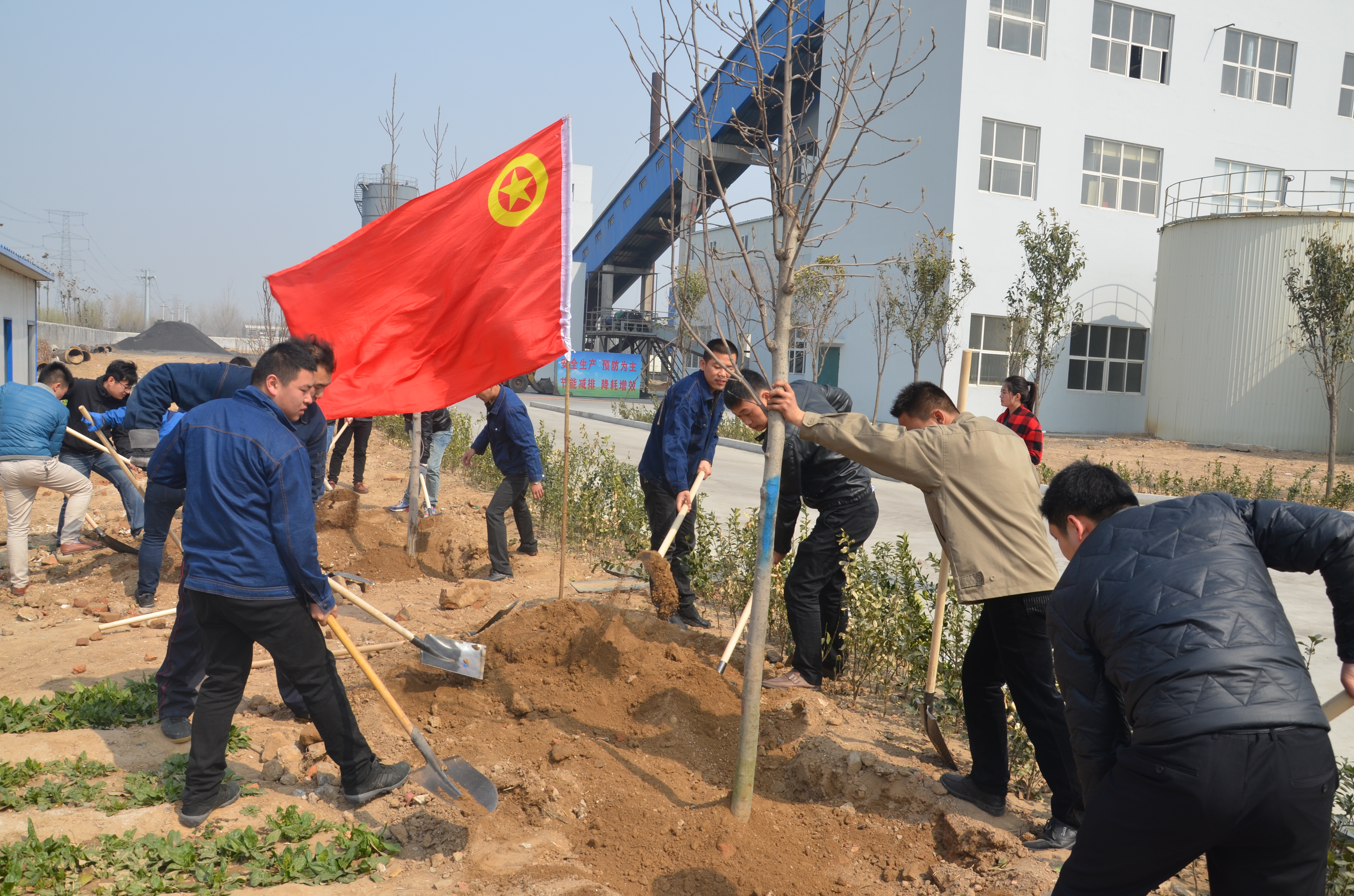 由于活動(dòng)組織較為縝密,各項(xiàng)事宜進(jìn)行的都非常順利。剛到達(dá)植樹(shù)地點(diǎn),大家都展現(xiàn)出不同一般的熱情,一個(gè)個(gè)樹(shù)坑的挖成,一棵棵樹(shù)苗的栽下,象征著一份份綠色的希望;每一滴汗水的流下,每一鏟泥土的填充,則代表著每一個(gè)人的奉獻(xiàn)與關(guān)愛(ài)。大家相互配合、協(xié)作,干勁十足。為確保栽植的樹(shù)苗成活,大家有序地進(jìn)行栽植、培土、澆水,分別為嘉祥廠區(qū)、汶上廠區(qū)增添了一片新綠。