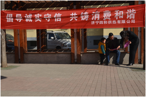2019年3月15日上午,濟寧四和供熱有限公司客服部宣傳小隊前往吉祥社區(qū),開展以“倡導(dǎo)誠實守信 共鑄消費和諧”為主題的宣傳活動,為百姓進行義務(wù)宣傳。